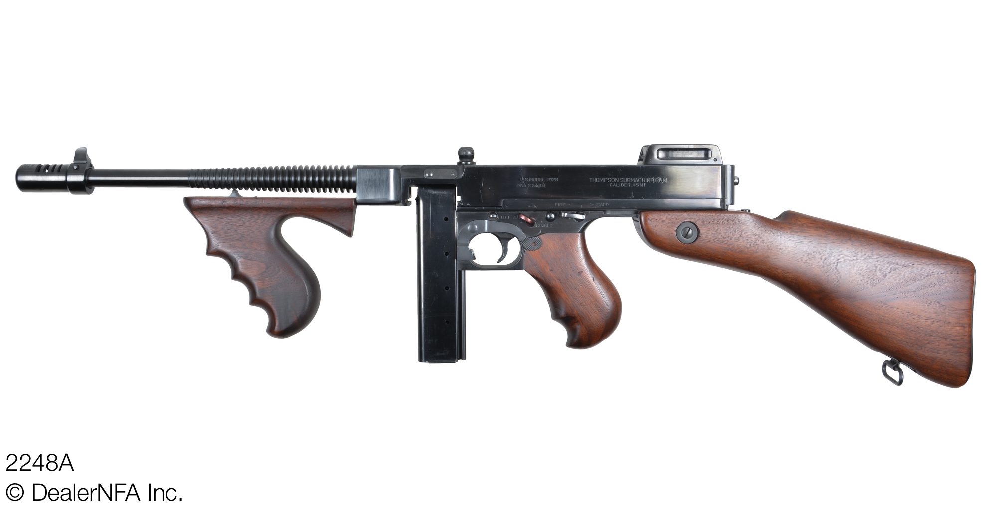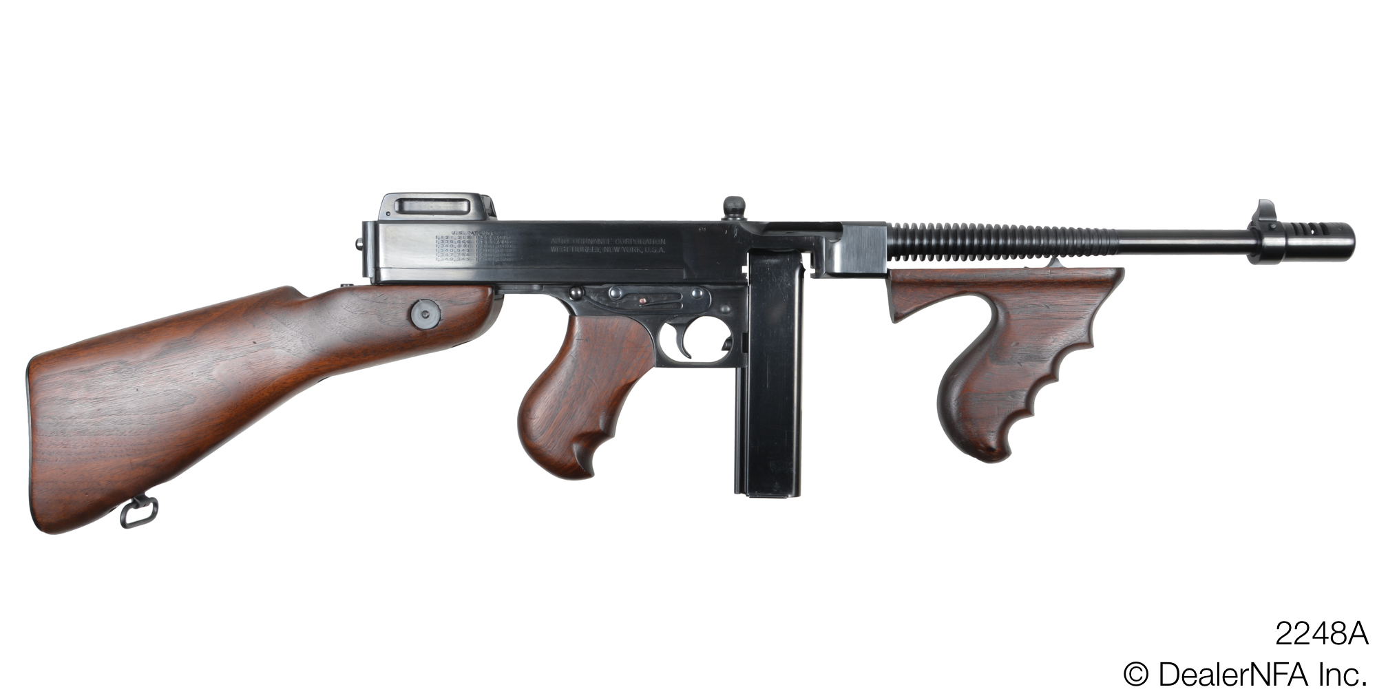 This C&R Fully Transferable Thompson Submachine Gun offered for sale is a West Hurley Model of 1928, serial number 2248A, and was manufactured in 1977 by Auto-Ordnance in West Hurley, New York.