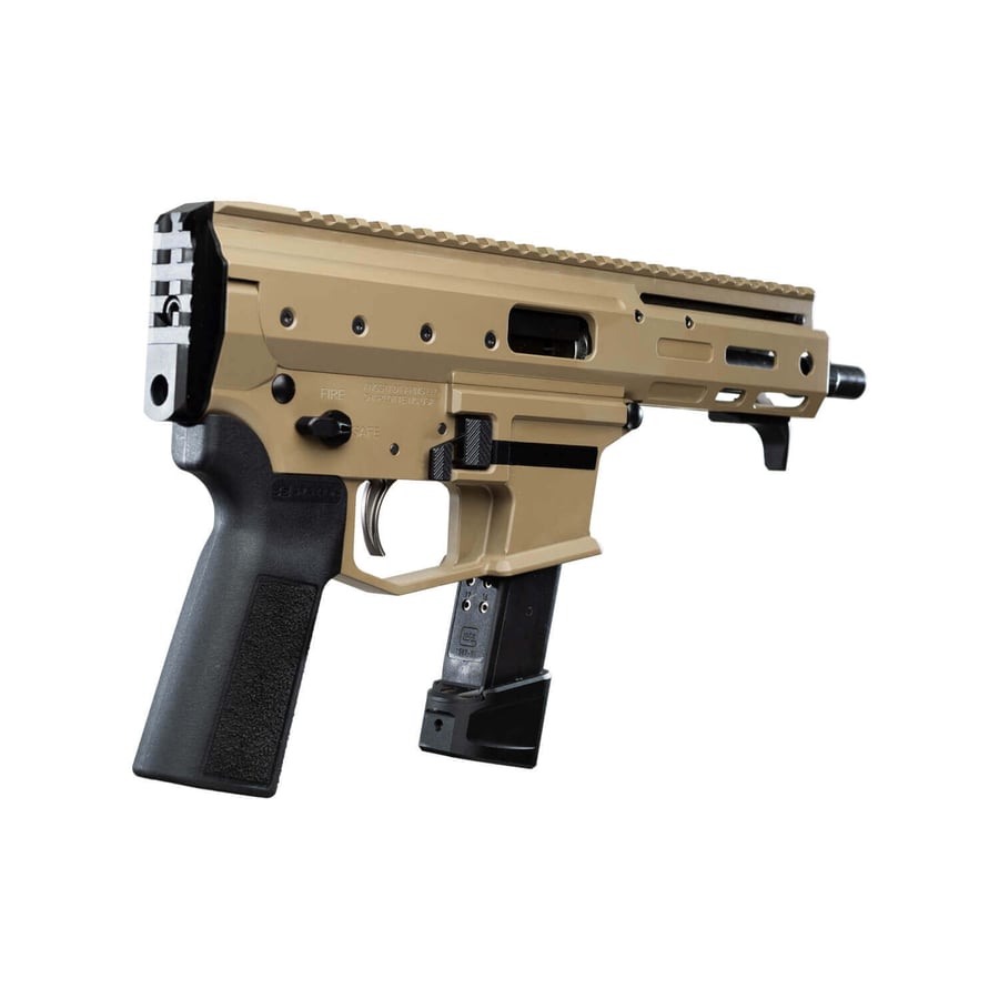 The MDP-9 GEN2 utilizes a roller-delayed blowback action like that found on the famous H&K MP5 allowing for an ultra-compact AR-9 style platform that does not rely on a buffer tube to function. The pistol features a monolithic upper receiver for improved strength and accuracy retention with a non-reciprocating ambidextrous charging handle that can be swapped for user preference. A Picatinny endrail interface allows for a wide variety of brace adapters to be mounted and comes with a QD sling socket if only a single-point sling is desired. The MDP-9 GEN2 is fully compatible with 9mm Glock magazines.