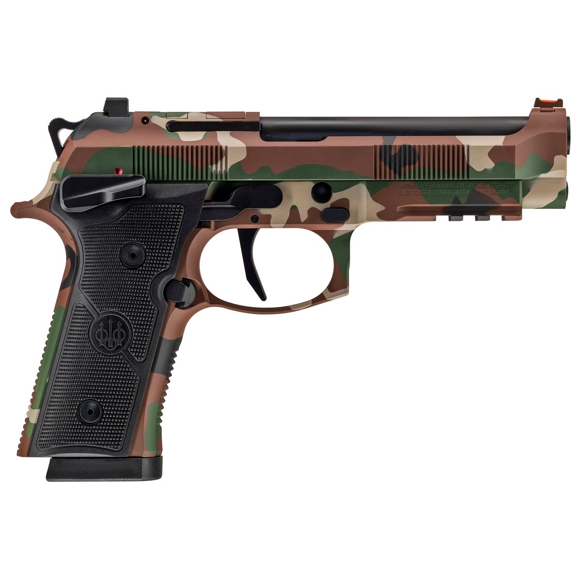 The 92XI Combat series pays homage to American history of military camouflage patterns. Each pistol is hand painted by veteran-owned company Howe Arms, which makes each pistol unique by having its own footprint. This model features the Battle Dress Uniform camouflage pattern designed for woodland environments that was utilized from the early 1980s until the mid-2000s. Two 10-round magazines are included.