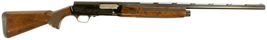 A deluxe version of the A5 Hunter. Featuring a gloss finished barrel and receiver with intricate scrollwork pheasant and mallard engraving; Grade 2.5 gloss varnish finish walnut stock with sharp 22 lines-per-inch checkering. Lightweight profile barrel aluminum alloy receiver recoil-operated Kinematic drive Vector Pro lengthened forcing cones and Invector-DS choke system. – Gauge: 12 Ga – Chamber Length: 3 – Barrel Length: 28 – Overall Length: 49 5/8 – Length of Pull: 14 1/4 – Drop at Comb: 1 3/4 – Drop at Heel: 2 – Weight: 6 lbs 13 oz – Magazine Capacity: 4 – Rib Width: 1/4 – Barrel Finish: High Gloss – Stock Finish: Gloss – Wood Grade: 2.5 – Chokes Included: Full Modified Improved Cylinder – Receiver Finish: Polished Black – Dura Touch Finish: No – Chamber Finish: Chrome Plated Chamber – Front Sight: Fiber Optic – Choke System: Invector-DS Flush – Barrel Material: Steel – Stock Material: Turkish Walnut – Recoil Pad: Inflex 2 Large – Checkering: Cut 18 LPI – Sling Swivel Studs: None – Receiver Material: Aluminum Alloy – Trigger Finish:Gold Plated – Trigger Guard Finish: Matte Black – Bolt Slide Finish: Brushed Nickel – Magazine Type: Tubular – Trigger Material: Alloy – Trigger Guard Material: Alloy – Trigger Guard Engraving: Buck Mark in Gold – Choke Wrench Included: T-Wrench