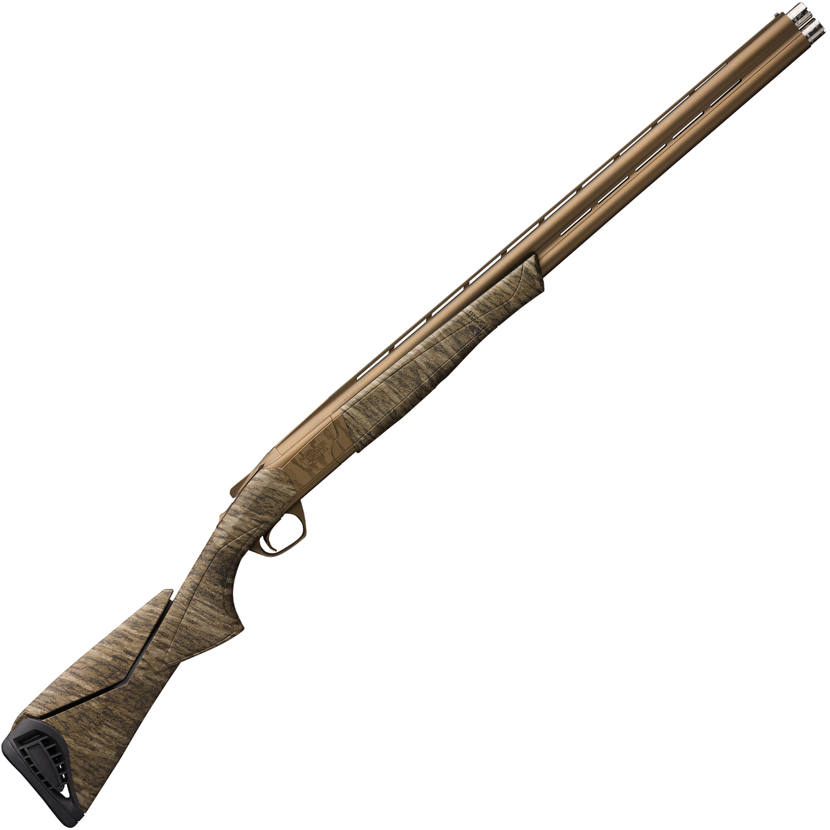 Browning Cynergy Wicked Wing Mossy Oak Bottomlands 12ga 3.5in Under Over Shotgun – 28in – Cynergy Wicked Wing Mossy Oak Shadow Grass Blades is a special gun for a special hunter. All Cynergy shotguns feature the same fit, finish and quality that makes Browning shotguns so sought after. Whatever your passion, there is a Cynergy to suit your every need. The Cynergy takes low profile to its lowest levels ever. Without a doubt, the Browning Cynergy began as the most technologically advanced over and under shotgun available. It has been called “revolutionary”. The Cynergy features the innovative Reverse Striker ignition system; a striker-based, mechanical trigger that offers the benefits of a crisp feel, reduced lock time and less over travel than other over and under shotguns. Cerakote Burnt Bronze camo finish on receiver, Burnt Bronze finish on barrels Adjustable comb and 1/4″ stock spacer make it easy to dial in a perfect fit (cast on/off combs also available) Camo, composite stock with textured gripping surfaces and Inflex recoil pad Three extended Invector-Plus banded choke tubes included (F, M, IC) Fully chromed bore for corrosion resistance Ivory front sight Ideal for hunting