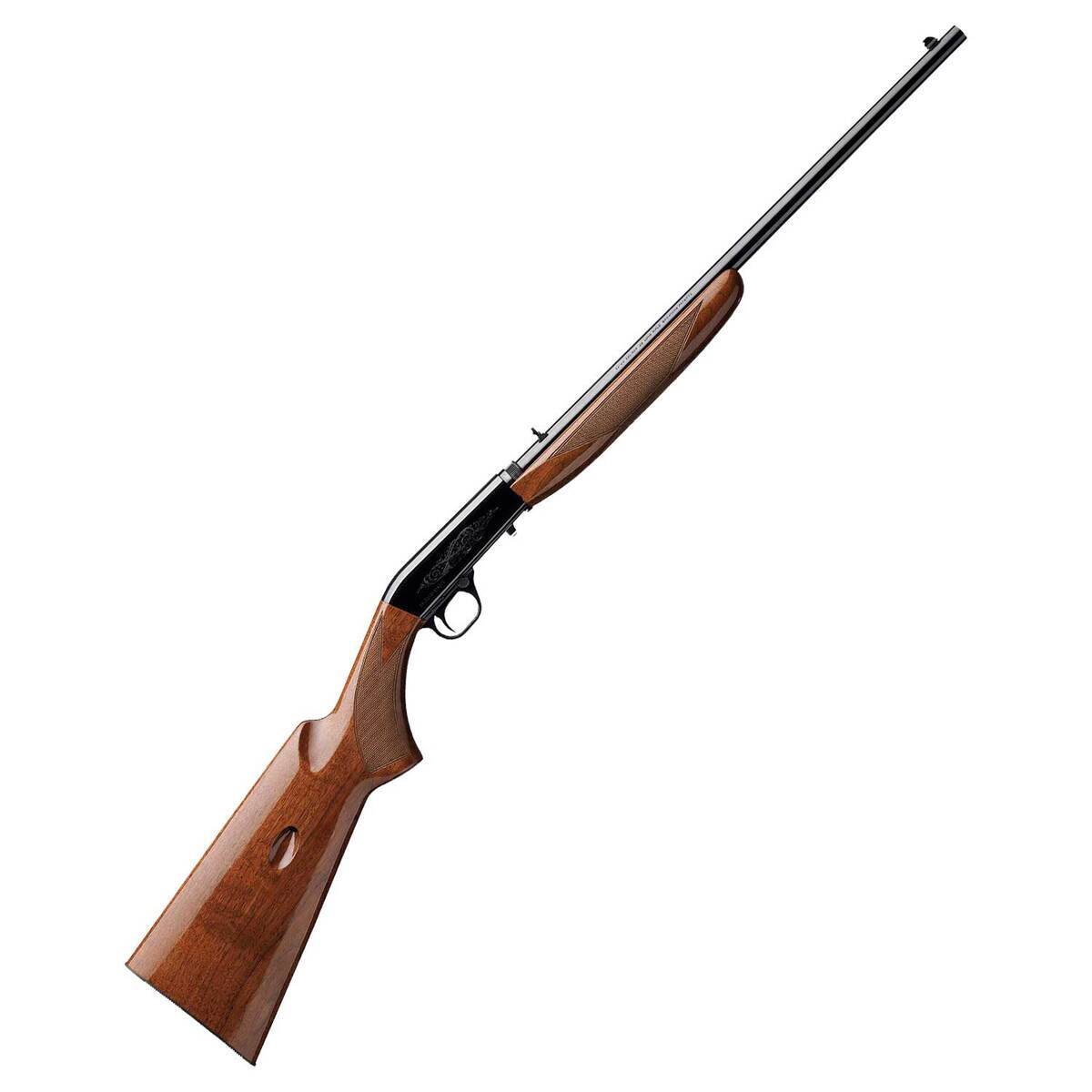 Browning Semi-Auto 22 Grade I Polished Blued/Walnut Semi Automatic Rifle – 22 Long Rifle – 19.37in – The SA-22 is sure to become your favorite plinker and varmint rifle. It is lightweight and easy to carry on a squirrel hunt, and easy to load for a day of plinking at the range. Construction quality and materials are top notch to ensure longevity and lasting beauty. The fine Walnut stock is sharply Checkered and polished to a sheen. The SA-22 ejects fired brass out the bottom of the receiver to make shooting a pleasure for right- and left-handed operators. Perhaps the most interesting feature is the ability to take the rifle down into two parts — the buttstock and receiver and the forearm and barrel — for storage or to simplify cleaning. Barrel: 19.37in, Polished Blued Steel, Light Sporter Contour Receiver: Machined from Solid Steel, Polished Blued, Scroll Engraved Wood Stock: Gloss Finish Grade I Black Walnut with Traditional Point Checking Pattern. Checkering: Cut 20 LPI Knurled knob allows play to be adjusted out of the barrel to ensure accuracy. Trigger Guard Engraving: Buck Mark in Gold Metal Butt Plate Tubular 10- Round Magazine Located in the Stock Bottom Ejection: Ejects fired brass out the bottom of the receiver to make shooting a pleasure for right- and left-handed operators.