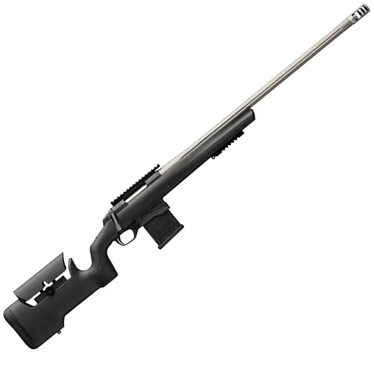 Browning X-Bolt Target Max Matte Black Cerakote Bolt Action Rifle – 308 Winchester – 26in – A new Browning bolt-action rifle optimized for long-range target shooting and competition. Features include a stiffer, heavier receiver, fluted stainless steel barrel with Recoil Hawg muzzle brake on 5/8in-24 suppressor-ready threads, adjustable Target DLX trigger, extended bolt handle and adjustable MAX composite stock.