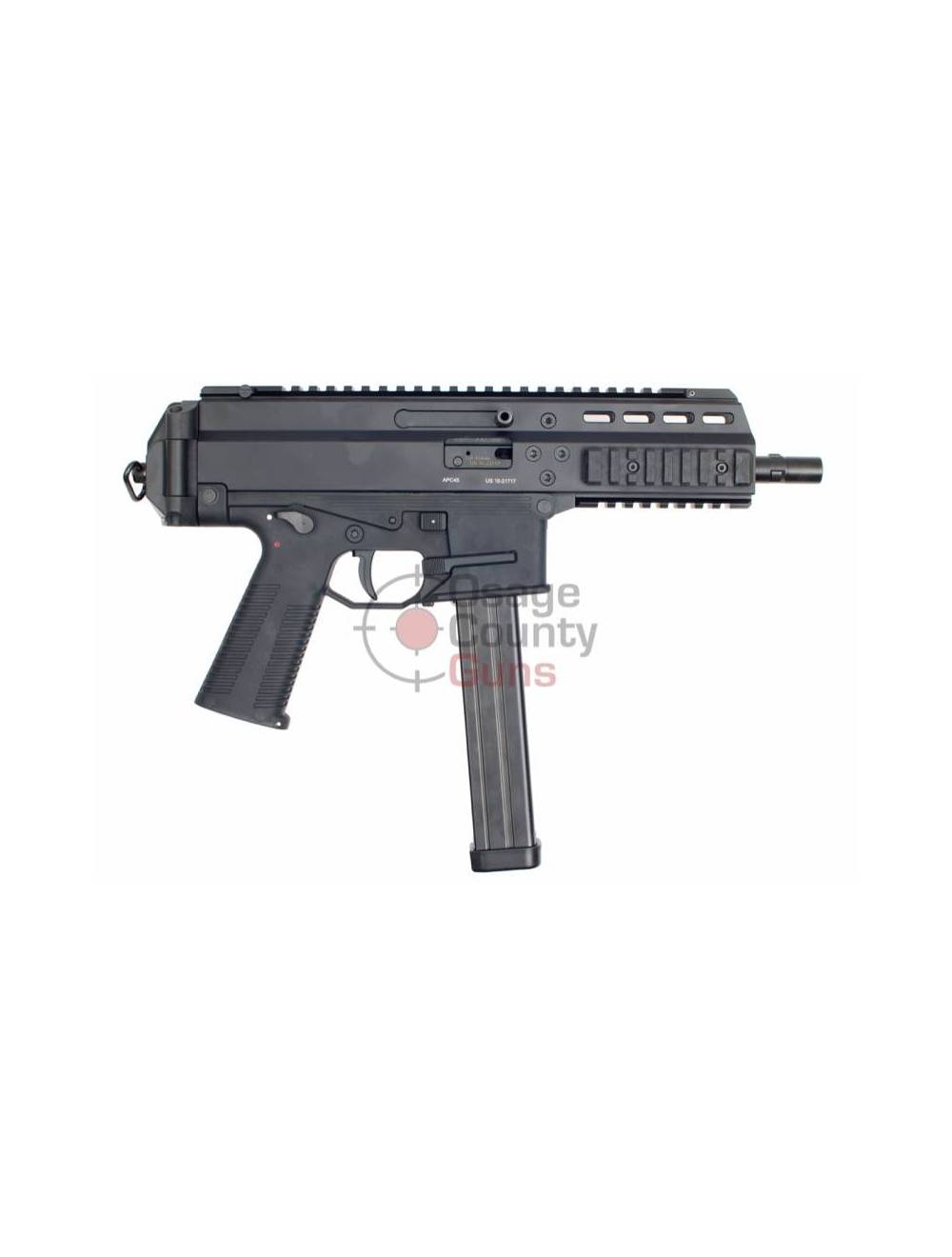 This is the new B&T (Brügger & Thomet) APC. The APC45 is a closed bolt semi-automatic .45 ACP pistol and ships in a hard case with one 30-Round magazine. Additional magazines sold separately.