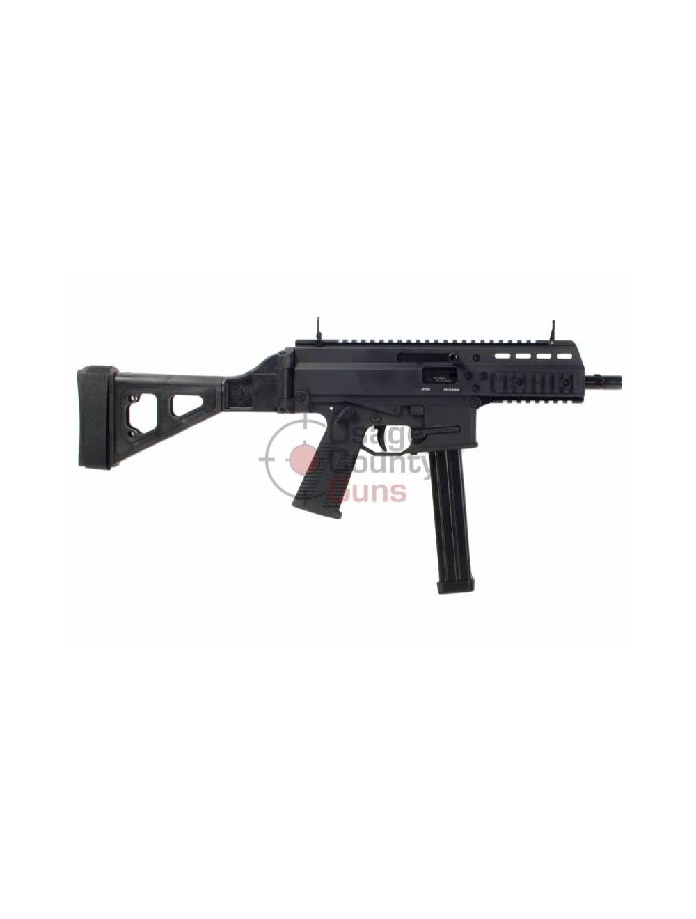 This is the new B&T (Brügger & Thomet) APC. The APC45 is a closed bolt semi-automatic .45 ACP pistol and ships in a hard case with a brace and one 25-Round magazine. Additional magazines sold separately.