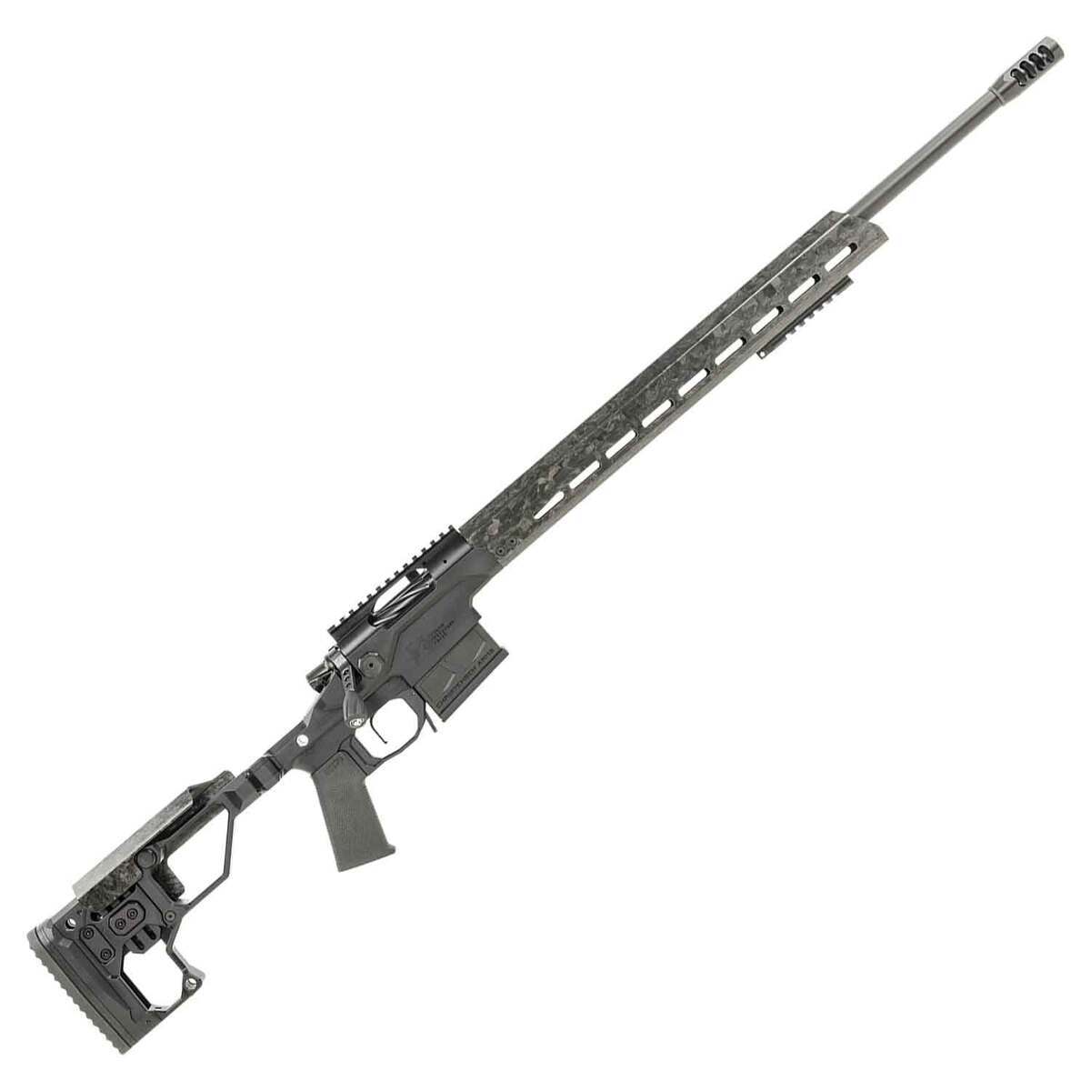 Christensen Arms Modern Precision Black Cerakote Bolt Action Rifle – 6mm Creedmoor – The Modern Precision Rifle is an ultra-lightweight chassis rifle designed to break with tradition. Beyond the folding stock the complete package is well equipped with a carbon fiber comb, free-floating carbon fiber handguard, and 20 MOA rail. The action and stainless steel side-baffle muzzle brake are finished in Black Nitride for a sleek look. The Modern Precision Rifle weighs in starting at 6.9 pounds and is backed by the Christensen Arms Sub-MOA Guarantee.