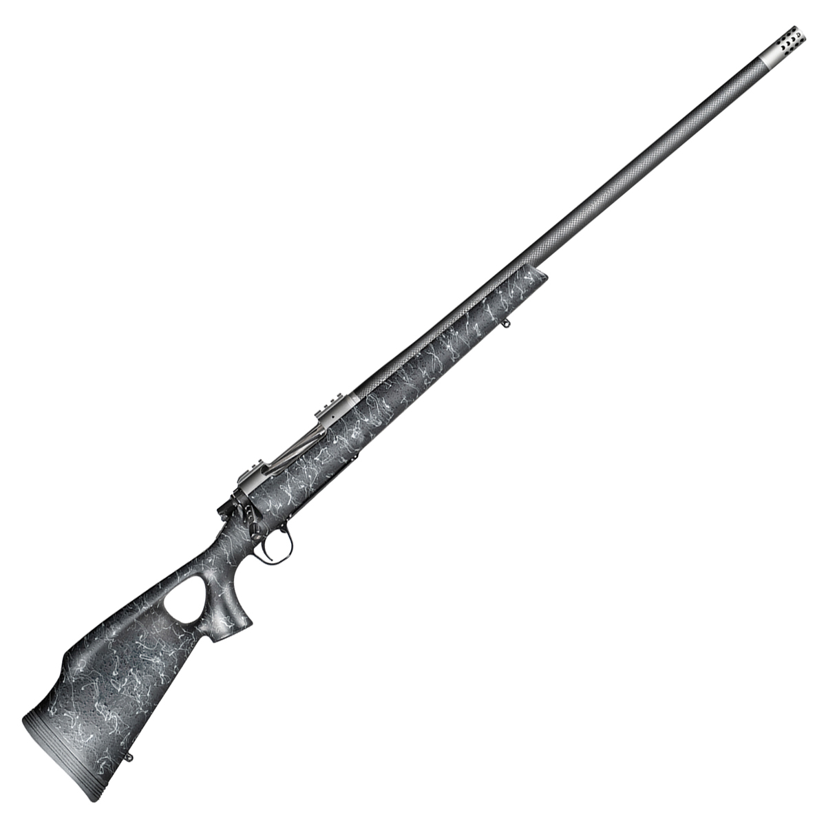 Christensen Arms Summit TI Stainless Bolt Action Rifle – 28 Nosler – 26in – Built from the most advanced materials, the Summit Ti is the ultimate refinement of Christiansen Arms’ passion for carbon fiber. The titanium action is machined with a 0 MOA picatinny split rail, matched with a light target contour Christensen Arms carbon fiber wrapped barrel, and finished with a titanium radial muzzle brake. Gunstock options include the legendary aerograde carbon fiber stocks in both sporter and thumbhole options. The Summit Ti weighs in starting at 5.5 pounds and features a Christensen Arms Half-MOA Guarantee.