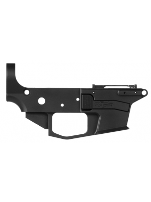 CNC machined from a billet of 7075-T6 aluminum, this stripped 9mm lower receiver features a hardcoat anodized black finish. Because it was machined instead of forged, it allows for a unique look with additional features built right in like the enlarged winter trigger guard and dedicated Glock magazine well. The takedown pins, safety selector, and trigger pin holes are all compatible with standard AR-15 lower parts.