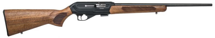 Set up for optics, The 512 American has a Turkish walnut stock with laser-cut checkering. This unique semi-autos action comprises of an aluminum alloy upper receiver, which secures the barrel and bolt assembly, and the fiberglass-reinforced polymer lower half houses the trigger mechanism and the magazine well. Sharing magazines with the CZ 455, the 512 makes for the ideal complement to your bolt-action CZ rifle.