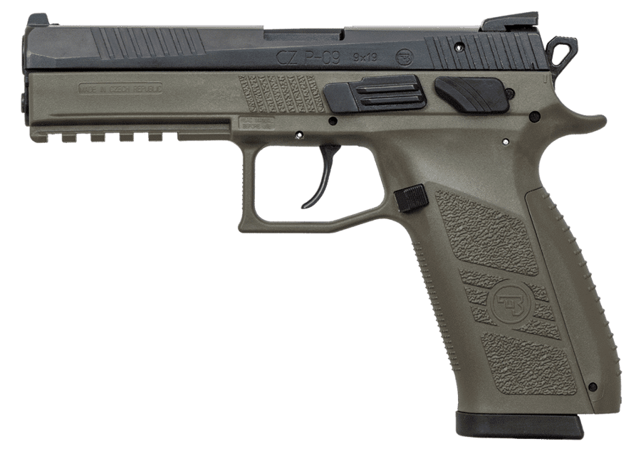 The P-09 is CZ’s full-size polymer frame, boasting an impressive capacity in its flush-fitting magazine. Featuring the versatile Omega trigger system, the P-09 is shipped with decockers installed, but can easily be converted to a manual safety with the supplied parts and instructions. Also included are small, medium, and large backstraps allowing the user to customize the pistol’s grip while retaining the natural point of aim for which CZ handguns are known. With an integrated 1913 Picatinny rail, the P-09 is readily adaptable to low-light situations. The Omega DA/SA trigger provides crisp single action trigger break, while providing the safety of a DA first-pull option.