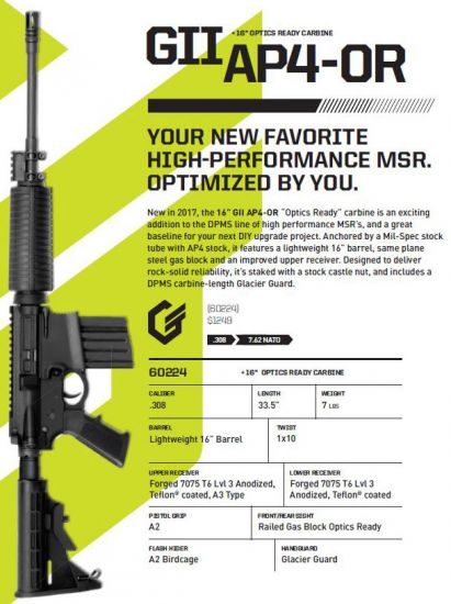 The 16” DPMS GII AP4-OR (Optics Ready) Carbine is the perfect do it yourself 308