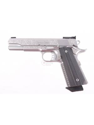 Hand relief engraved package (includes flats of slide and frame, grip screws, and flats of thumb safety, grip safety, slide stop, mag release and one engraved magazine). The spare magazine is not engraved.
