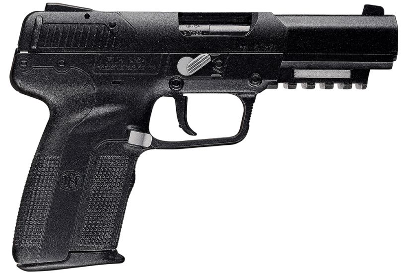 The FN Five-seveN single-action autoloading pistol fires the low-recoil 5.7x28mm cartridge making it ideal for personal protection, target shooting or NRA Tactical Police Competition. It features a textured, ergonomic polymer frame with checkered panels for enhanced grip. The polymer slide cover helps reduce weight and the operating controls allow for easy access with a reversible magazine release and ambidextrous manual safety levers. The barrel is hammer-forged and chrome-lined for enhanced accuracy and extended service life. Pistols ship with 3 magazines and a lockable hard case.
