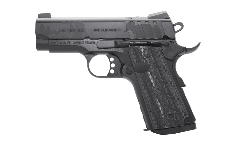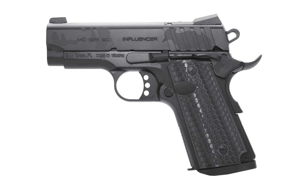 The MC1911 Influencer series offers a premium tactical 1911 at an affordable price ideal for both target shooting and defensive use. The pistol features an optic ready slide designed for direct mounting of RMS and RMSc style optics along with an accessory rail for mounting lights and laser aiming devices. The addition of hexagon-style grips and an extended beavertail and magazine well allows for maximum comfort and ease of use. The Influencer series also features an ambidextrous safety lever to accommodate both right and left-handed shooters.