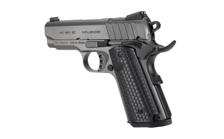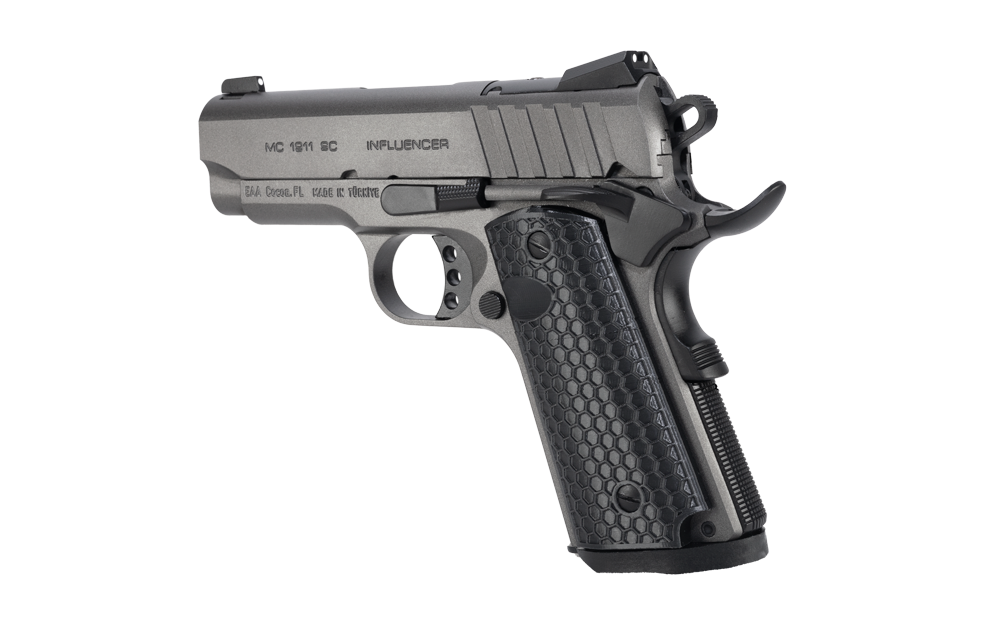 The MC1911 Influencer series offers a premium tactical 1911 at an affordable price ideal for both target shooting and defensive use. The pistol features an optic ready slide designed for direct mounting of RMS and RMSc style optics along with an accessory rail for mounting lights and laser aiming devices. The addition of hexagon-style grips and an extended beavertail and magazine well allows for maximum comfort and ease of use. The Influencer series also features an ambidextrous safety lever to accommodate both right and left-handed shooters.