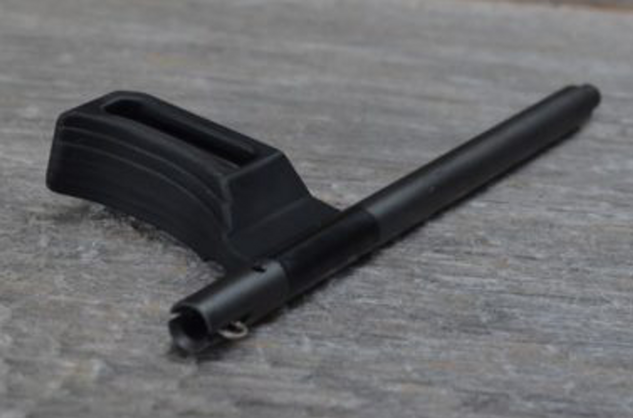 The ProStock Extended Charging Handle for the CZ Scorpion EVO 3 gets your fingers away from the molded picatinny rails (knuckle biters) on the barrel shroud of the Scorpion, and provides a larger and more robust control handle for charging the weapon. The ProStock Charging Handle is ambidextrous and can be used on either the right or left side of the Scorpion. The finger catch/handle is molded from high performance polymer and the charging rod is machined from precision ground 17-4 stainless steel and black nitride finished. The ProStock Charging Handle blends right in with all of the factory lines and shapes, completely inconspicuous, until you reach for it and realize that it is almost twice the surface area of the factory charge handle that you replaced. This charging handle preforms beautifully with both factory polymer and aftermarket aluminum handguards.
