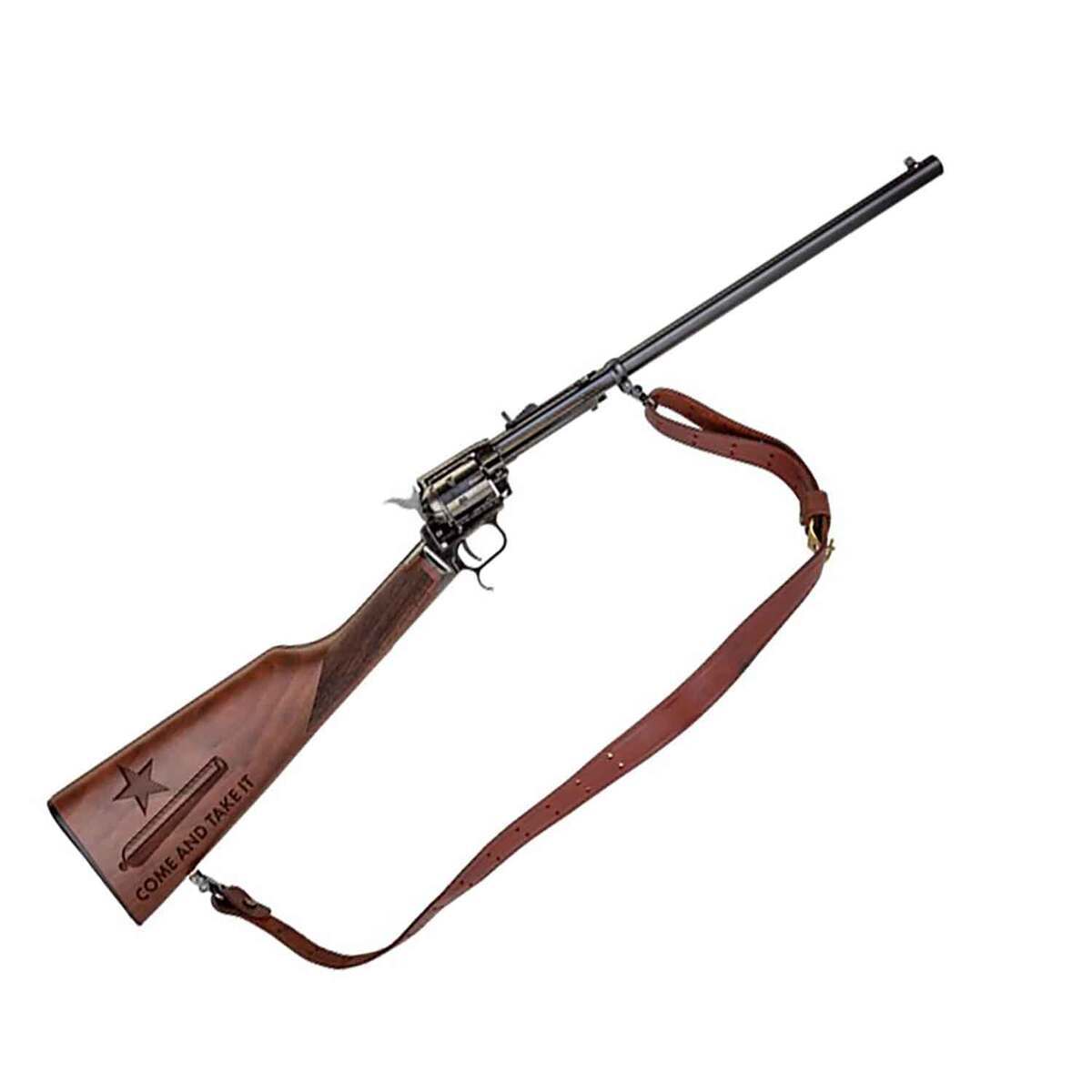 Heritage Rough Rider Rancher Black Revolver Rifle – 22 Long Rifle – 16.13in – The Rough Rider Rancher carbine bridges the gap between rifle and revolver for simplicity and portability. This model features an engraved “Come And Take It” detail on the stock.