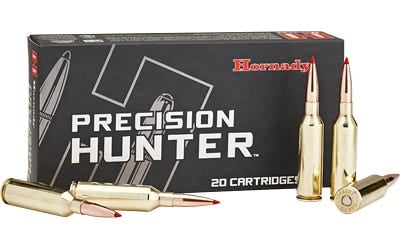 Hornady Precision Hunter delivers match-grade accuracy and performance with great consistency to achieve maximum ballistic potential. The box contains 20 rounds of 143 grain 6.5 PRC. Buy ammo online and 6.5 PRC bulk ammo for sale from GrabAGun today!