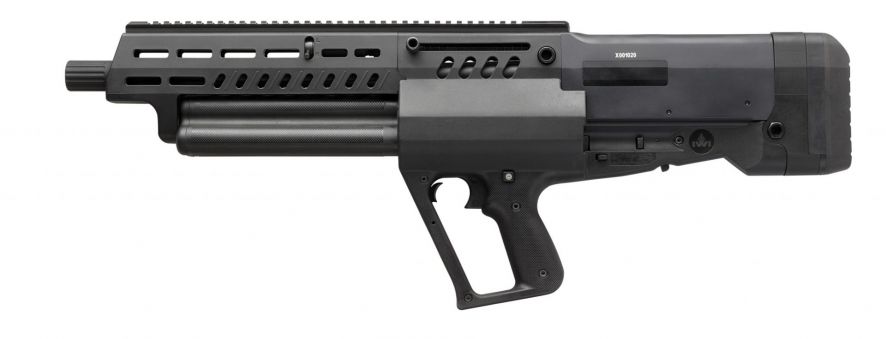 The Tavor TS12 12 gauge shotgun is a gas regulated bullpup shotgun with an innovative design that feeds from one of three (3) individual magazines which can hold four 3 inch shotgun shells or five 2 ¾ inch shotgun shells each. This means that the potential overall capacity from all three (3) individual magazines is 15 rounds plus one additional round in the chamber. The TS12 has a unique feature that automatically loads a round in the chamber once the subsequent loaded magazine is rotated into position. It can be fed and unloaded from either side.