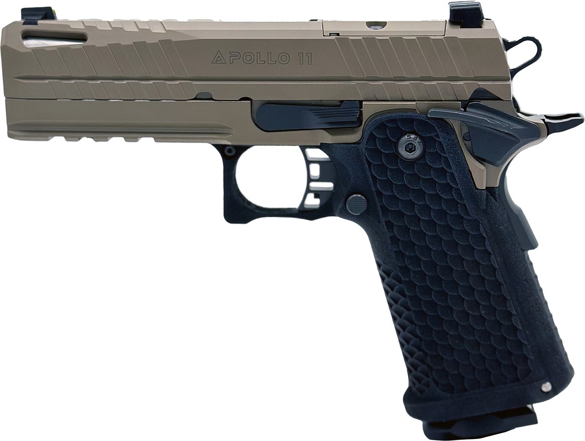 The Apollo 11 offers an affordable alternative to shooters looking for an economical 2011 pistol. The Apollo 11 features a hand-fit construction with a match-grade bushingless bull-profile barrel for maximum performance. The slide is optic-ready with an RMSC footprint ready for direct optic mounting without the need for adapter plates, and is complimented by an accessory rail for mounting tactical accessories. The compact model features a shorter barrel for easier storage and concealment.