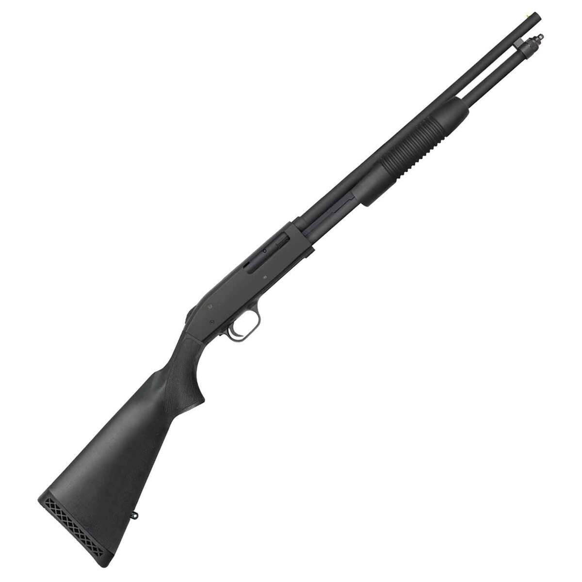 Mossberg 590 7-Shot Matte Blued 410 Gauge 3in Pump Action Shotgun – 18.5in – The Mighty 590. With decades of military and law enforcement duty and countless performance and success stories under its belt, it’s no surprise that the 590 chosen for duty around the globe is also the ideal choice for home defense needs. Dual extractors Steel-to-steel lockup Top-mounted ambidextrous safety Twin action bars Anti-jam elevator
