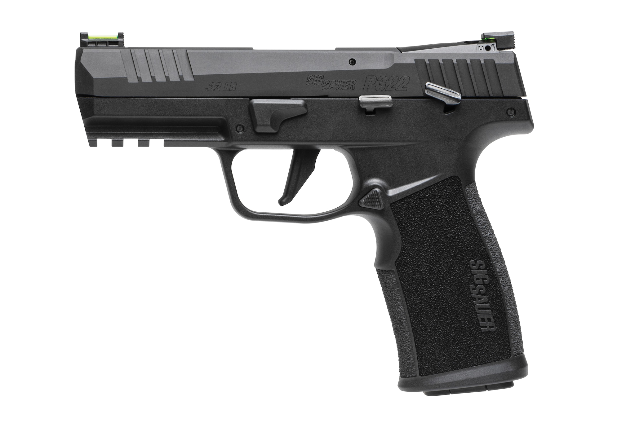 The P322 is suppressor ready and includes a threaded barrel adapter, as well as a flat and curved interchangeable trigger shoe. The P322 features fully ambidextrous controls including manual safety and reversible magazine catch that make it ideal for both right and left-handed shooters. The pistol ships with (2) 20-round magazines and a custom designed magazine loader