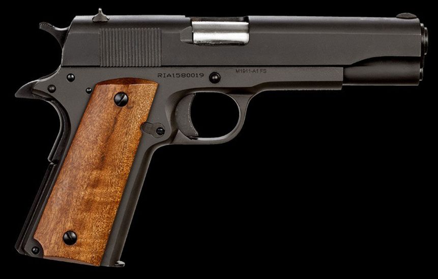 The M 1911 GI Standard FS has fixed, low profile sights and traditional smooth slim design that is ideal for quick pull holster use. A durable black parkerized finish gives it a tough, smooth, non-reflective surface. The smooth wood grips offer comfort in both feel and design. The 5 barrel offers a balanced weight to assist with the accuracy and recoil.