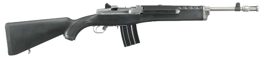 The Mini-14 Tactical rifle offers inherent accuracy and quick repeat shot capability. Its Garand-style action with breechbolt locking system, is a fixed-piston gas system and self-cleaning which gives unparalleled reliability under harsh operating conditions. The steel receiver is drilled and tapped, has a Picatinny rail, and integral scope mounts that provides a stable mounting surface. The Mini-14 Tactical also has a cold hammer-forged, threaded barrel and ghost ring adjustable rear and blade front sights. Included are two magazines and scope rings.