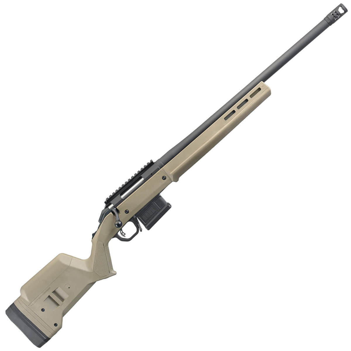 Ruger American Rifle Hunter With Magpul Black/Flat Dark Earth Bolt Action Rifle – 6.5 Creedmoor – 22in – The Magpul Hunter American short-action stock of this rifle features fully adjustable length of pull (spacers included) and comb height (available from Magpul) and enhanced ergonomics. The Ruger Marksman Adjustable trigger offers a crisp release with a pull weight that is user adjustable between 3 and 5 pounds, allowing shooters to make that perfect shot. The one-piece, three-lug bolt with 70° throw provides ample scope clearance and utilizes a full diameter bolt body and dual cocking cams for smooth, easy cycling from the shoulder. Factory-Installed, One-Piece Picatinny Scope Base Offers Minute-Of-Angle Accuracy That Can Make Every Hunt A Success Heavy-Contour (.850in At The Muzzle) Barrel Features A Ruger Precision Rifle Hybrid Muzzle Brake To Effectively Reduce Recoil While Minimizing Noise And Blast To The Sides Of The Shooter The Visible, Accessible And Easy-To-Actuate Tang Safety Provides Instant Security Includes One Magpul Pmag 5-Round 7.62 AC Magazine For Reliable Detachable Box Magazine Compatibility