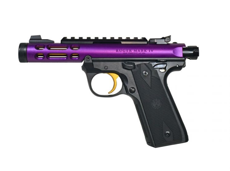 The Mark IV 22/45 Lite’s CNC-machined aluminum receiver houses a 4.4-inch stainless steel barrel, held in place by a tension nut to ensure accuracy. The Mark IV 22/45 Lite also features adjustable target sights, an installed Picatinny rail for easy mounting of optics and a factory-threaded 1/2″-28 muzzle to accept popular muzzle accessories. The comfortable, precision-molded polymer grip frame incorporates replaceable Hogue black rubber grip panels that allow shooters to customize the look of the pistol. The Mark IV 22/45 Lite is the perfect outdoor companion and can be used for target shooting, plinking, small game hunting or competitive shooting.