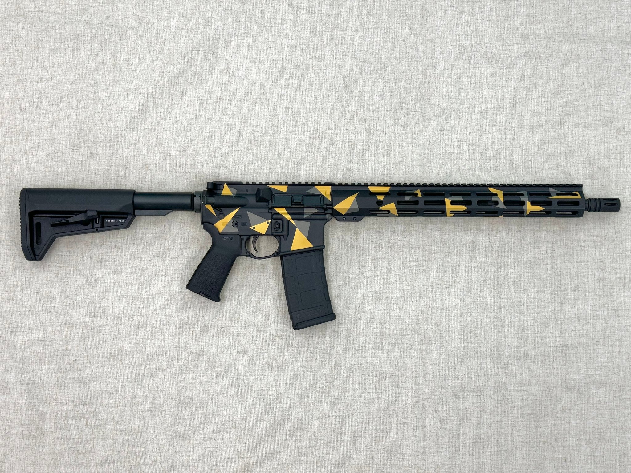 This model is chambered in 5.56x45mm NATO and features SCT’s custom Geodesic Cerakote finish along with custom engraving on the receiver. One 30-round magazine is included.