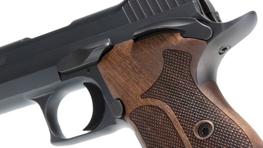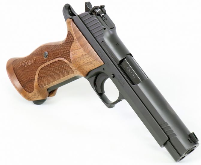 The P210 Target takes the precision of its 1947 Swiss predecessor and greets it with new sleek, custom walnut target grips, a precision-machined stainless steel slide and frame, and a lightweight target trigger. These updated features pay homage to the original craftsmanship and bring it to a more competitive target shooting level. Meant to balance well in one hand or two, this P210 Target is chambered in 9mm and comes with both adjustable rear and fiber optic front sights. Also included are two 8 round steel magazines.
