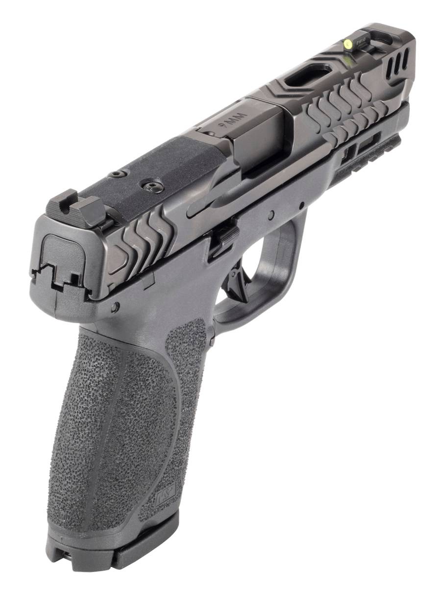 The Performance Center Carry Comp variation of the M&P9 is a further refinement of Smith & Wesson’s proven duty-carry pistol. The handguns features the company’s new ClearSight cut designed to divert gases away from mounted optics to maintain a clear sight picture when firing. This is combined with the new Carry Comp compensator that features Smith & Wesson’s trademark Power Port that is designed to direct gasses upwards to reduce felt recoil. The compensator is built into the slide, eliminating the need for a threaded barrel.