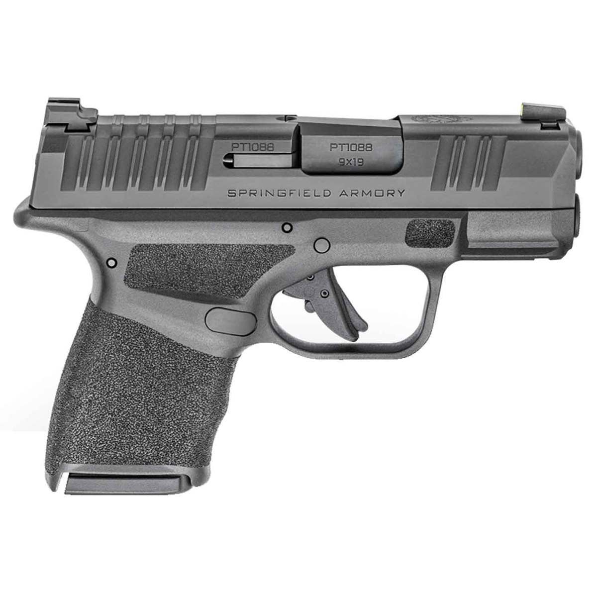 Springfield Armory Hellcat 9mm Luger 3in Black Pistol – 13+1 Rounds – Designed for portability and everyday carry, featuring an 11+1 capacity with its patented Springfield magazine design. When used with its included extended magazine, the Hellcat has a full capacity of 13+1. An included flush plate minimizes the pistol’s footprint. The firearm weighs 18.3oz unloaded, measures 1 inch wide, and is equipped with a 3-inch long hammer-forged steel barrel. The Springfield Armory 9mm Hellcat is chambered in the versatile 9mm caliber and features a Dual Captive Recoil Spring, which increases the weapon’s reliability and lessens recoil when discharged. Melonite Finished Barrel Standard Accessory Rail Reversible Magazine Release Loaded Chamber Indicator 11 & Extended 13-Round Magazines (Both Included)
