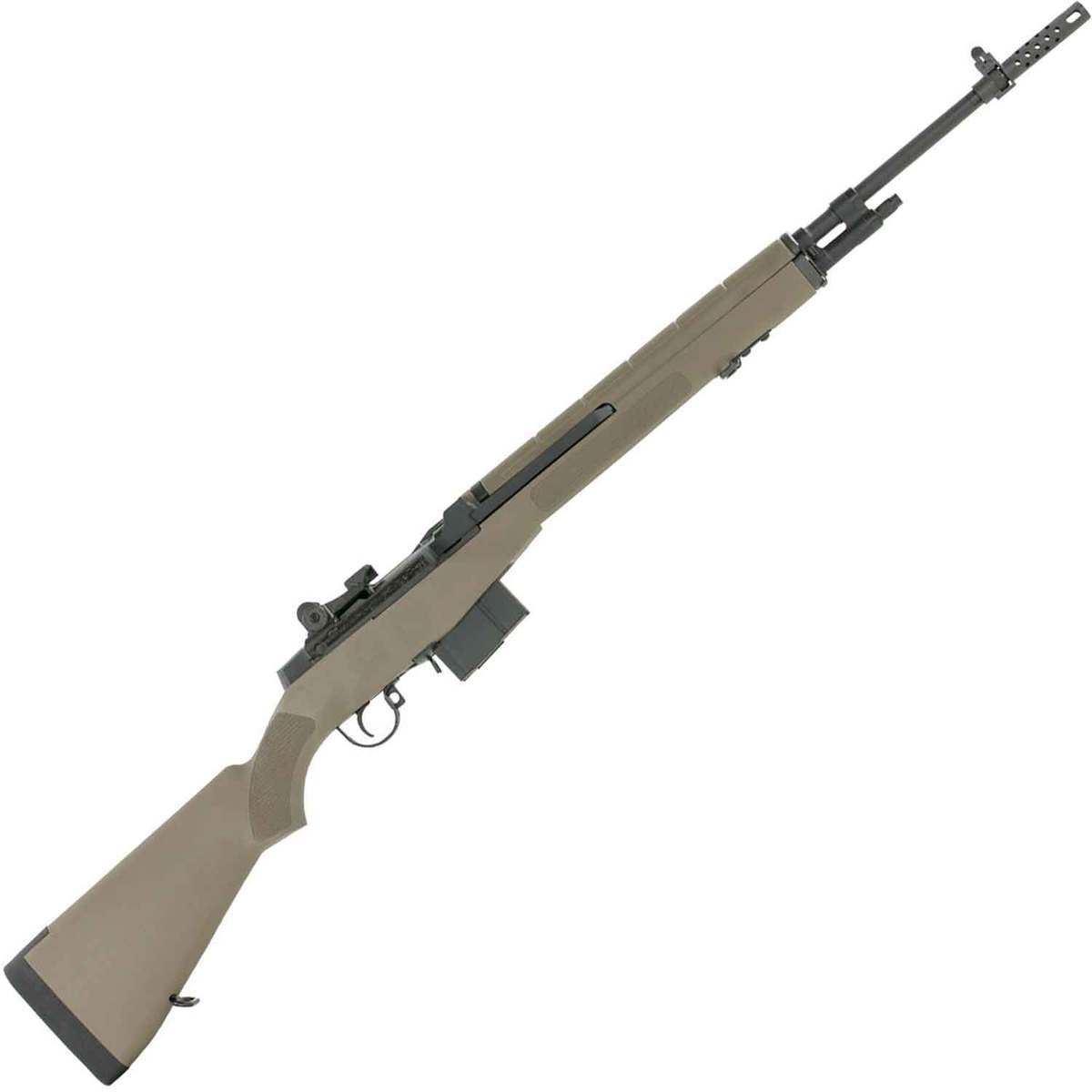 Springfield Armory M1A 308 Winchester 22in FDE/Black Parkerized Semi Automatic Modern Sporting Rifle – 10+1 Rounds – The M14 rifle earned a place in American arsenals in 1959 and remains in active service even today. The Springfield Armory M1A rifle features a full-length 22in 1:11in-twist carbon steel barrel and military two-stage trigger. This FDE version weighs 9.3lbs. and is specifically tailored for California shooters. National Match Medium Weight Barrel: 22in NM Medium Weight, Six-Groove Carbon Steel, 1:11in Twist Trigger: 2-Stage, NM Tuned The military aperture rear sight on the M1A Standard Issue 7.62 FDE CA-compliant rifle is the most effective in the world. Muzzlebrake Includes: One 10-Round Magazine and Padded Foam Shell Rifle Case. Caliber: 308 Winchester and 7.62mm NATO Color: Tan and Black California Compliant
