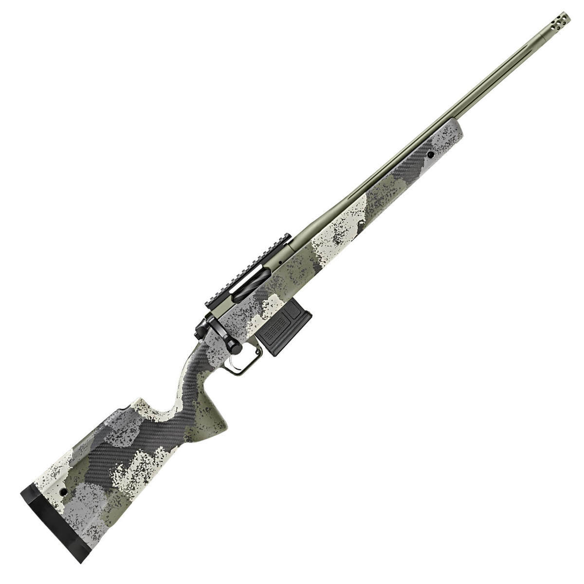 Springfield Armory Model 2020 Waypoint Carbon Fiber/Evergreen Camo Bolt Action Rifle – 6mm Creedmoor – 20in – Springfield Armory has a storied history of building fine firearms for defense and competition. The Model 2020 Waypoint is a premium American-made bolt action hunting rifle. The custom painted Evergreen stock of the Waypoint is made of cutting-edge carbon fiber to combine light weight and rugged strength. Delivering a remarkable .75 MOA accuracy guarantee, the rifle’s stainless steel fluted barrel is topped off with a removable SA Radial Muzzle Brake. Mil-Spec Green Cerakote Receiver, Barrel And Muzzle Device Fluted 4140 Tool Steel, Nitride Finished Bolt TriggerTech Adjustable Trigger, 2.5-5lbs Fluted 416 Stainless Steel Barrel Installed Picatinny Rail Mount AICS Short Action Magazine SA Radial Muzzle Brake Made In The USA