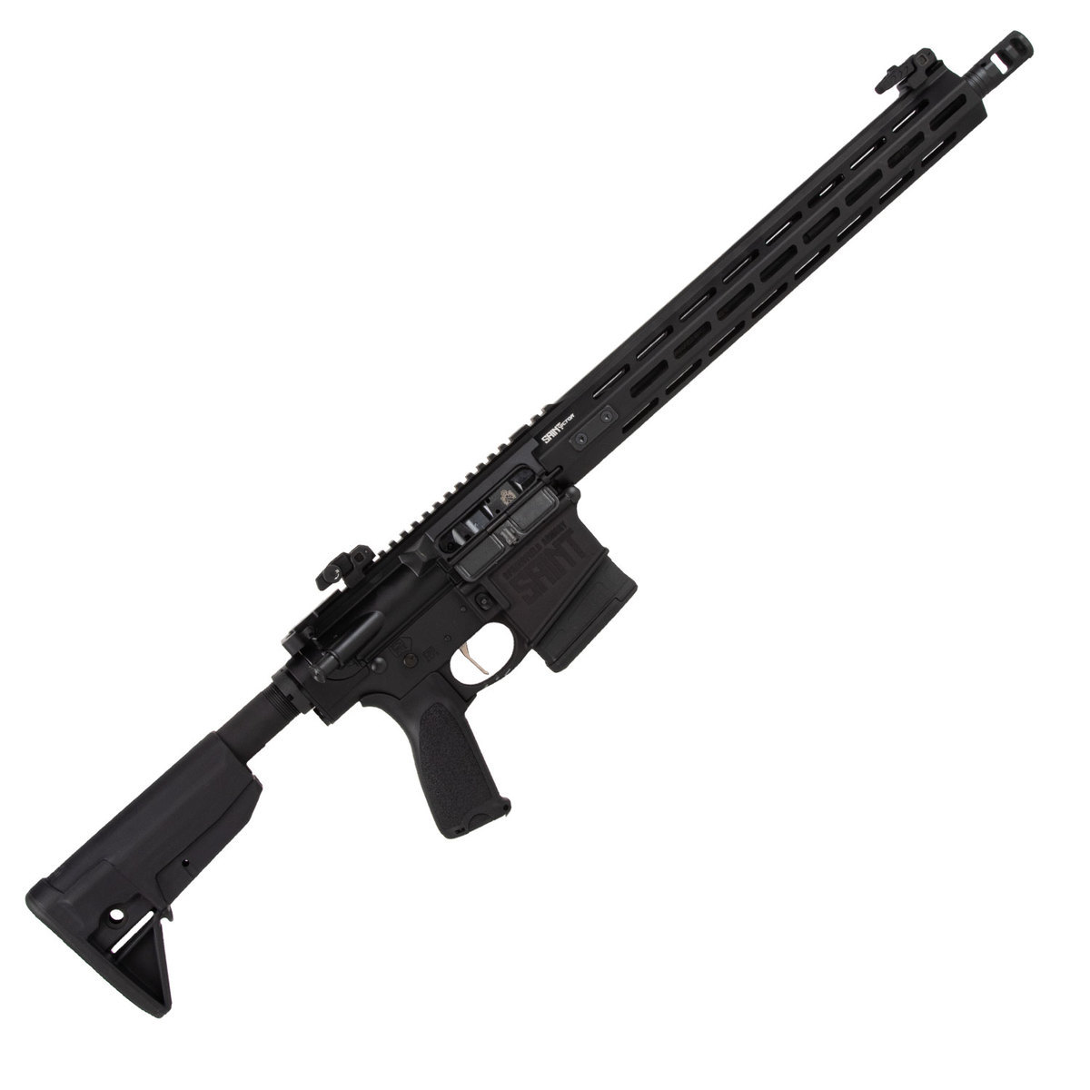 Springfield Armory Saint Victor 308 Winchester 16in Black Melonite Semi Automatic Modern Sporting Rifle – 10+1 Rounds – Springfield’s Saint Victor is the ideal refinement of the time-tested AR-15 design and represents everything that a defensive carbine should be. It features extra-tough, forged aircraft-grade 7075 T6 aluminum upper and lower receivers joined using the Accu-Tite system and Type III hard coat anodized finish. It utilizes a free-float M-Lok handguard, mid-length ditect impingement gas system paired with a heavy tungsten buffer, the Saint also has an M16 bolt carrier group machined from Carpenter 158 steel, shot peened and magnetic particle inspected. The 16in Chrome Moly Vanadium barrel is treated with Melonite and has a 1:8in twist rate for complete ammunition flexibility. The optic-ready out of the box, the flat-top receiver is topped with Springfield Armory’s low profile flip-up dual aperture rear sight with 1/2 MOA windage adjustment capability, and an A2-style gas block post front sight. The Bravo Mod 2 6-position buttstock is rattle-free with positive cheek weld areas, a rubber butt plate, and one fixed and two QD sling attachment points. Flip Up Front And Rear Sights Muzzle Brake Black Bravo Mod3 Grips 16in To 16.99in Barrel Length Range Single Stage Trigger