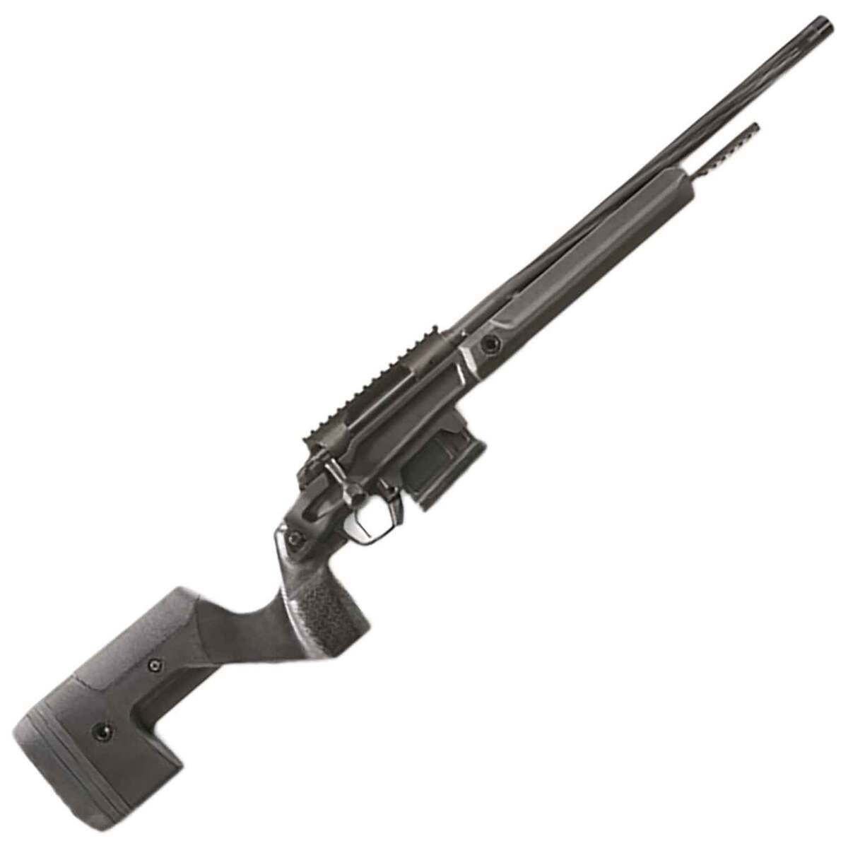 Stag Arms Pursuit Black Stainless Steel Bolt Action Rifle – 308 Winchester – 18in – The Stag Pursuit represents the next generation of user-customizable, lightweight precision hunting rifle. With an Aero Precision-built 700-pattern action and tri-lug bolt, the Pursuit provides an incredibly smooth cycle and 60° throw for lightning-quick follow-up shots. The bolt handle is RPR compatible, so there are tons of aftermarket options if you want to replace it. The chassis is a 3-part modular design comprised of magnesium alloy receiver, glass-filled polymer stock, and aluminum forend—enabling easy future modification with new stocks and handguards that will completely change the look and application of the rifle. The 700-pattern action is crafted from 416R stainless steel and features a nitride finish for corrosion resistance as well as a top-side Picatinny rail. The bolt can be easily disassembled WITHOUT the use of tools, and the 18in fluted barrel is easily replaceable with a Zermatt wrench and vise. The polymer stock features an adjustable cheek piece, and can be adjusted for different lengths-of-pull via included spacers. The stock and forend are easily removed, the stock uses a crossbolt takedown pin, making it a simple matter to reconfigure the rifle with skeletonized components or the like in the future. M-LOK compatible forend slots, multiple QD sling cups, and a front rail extension for attaching a bipod complete the package, making the Stag Pursuit Bolt Action Rifle a winner at its price point Built around an Aero Precision Remington 700-pattern action made from 416 stainless steel 3-piece modular chassis with magnesium alloy receiver, polymer stock and aluminum forend 18in fluted barrel can easily be replaced using a Zermatt wrench and vise 3-lug bolt with 60° throw for fast follow-up shots Bolt handle is RPR compatible, and can easily be replaced with lots of available options Polymer stock has an adjustable cheek piece, and is adjustable for length of pull via spacers Forend has M-LOK slots for accessories and an extension for attaching a bipod Multiple QD sling cups Includes (1) 5-rd. AICS Short Action PMAG