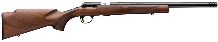 Precise construction yields precision accuracy. If you’re looking for precision-built rimfire rifle to test your skills at the range or take to prairie dog town for varmint control, this T-Bolt should be on your short list. The compact 16-1/2″ heavy bull barrel includes a muzzle brake threaded with common 1/2″x28 TPI threads that make it ripe for adding a sound suppressor. The walnut stock is a steady platform as well with a wide fore-end for added stability from a rest and a raised comb for improved eye to scope alignment. Available in three popular rimfire calibers to match your sport or quarry.