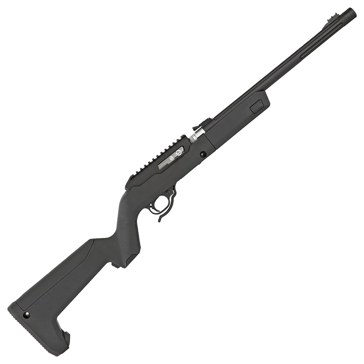 Tactical Solutions X-Ring Takedown VR Matte Black Semi Automatic Rifle – 22 Long Rifle – 16.5in – The Tactical Solutions X-Ring Takedown VR is a modern upgraded rifle built off the venerable 10/22 design. This takedown model rifle has a removeable barrel and, thanks to the factory installed Magpul Backpacker Stock, can be stored underneath for a smaller footprint while transporting. The X-Ring TD receiver has an integral rail for mounting optics, an extended magazine release, side swappable bolt handle and dual guide rod system for smooth cycling. The included X-Ring TD Barrel has 1/2×28 threads, heat dissipating fluting and iron sights. The X-Ring Takedown VR is lightweight and highly accurate, making it an ideal choice for backpacking, hunting and plinking.