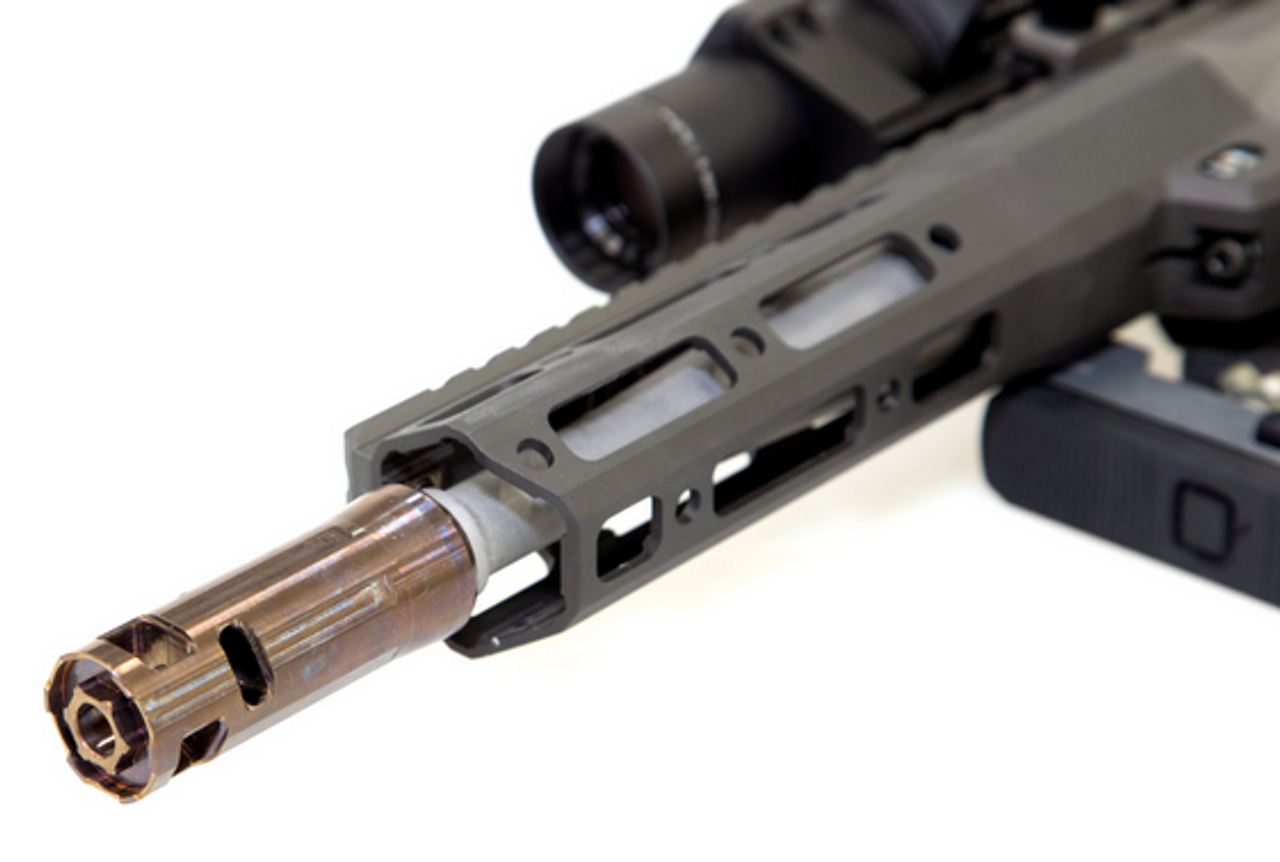 The Bottle Rocket™ by Q® is an enhanced brake for use with our Cherry Bomb™ muzzle brake. On top of that, it also serves as a sexy-ass thread protector for your Cherry Bomb™ when not hosting a silencer.
