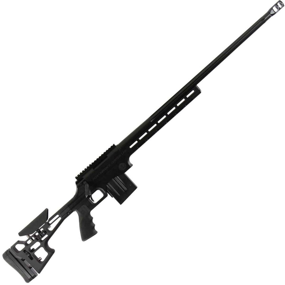 Thompson Center Arms Performance Center LRR Black Bolt Action Rifle – 243 Winchester – 10+1 Rounds – Co-developed by Performance Center and Thompson/Center Arms for extreme long range shooting, the Performance Center T/C Long Range Rifle is built on an aluminum chassis stock and includes a 20 MOA picatinny-style rail and 5R rifled, fluted barrel for enhanced accuracy. It is built for the precision shooter, featuring an adjustable cheek piece and butt plate for a custom fit and built-in Magpul M-LOK slots for quick, easy mounting of accessories. The rifle features a threaded barrel with muzzle brake and a Performance Center trigger. It also features bipod legs. This 243 Winchester model has a black receiver finish and barrel.