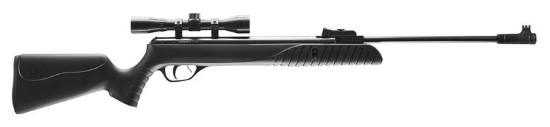 The Umarex Syrix .177 caliber break barrel delivers loads of airgun features for a great price. This break-barrel pellet rifle is equipped with the Umarex TNT Gas Piston that delivers smooth cocking and consistent shooting. Whether you prefer a rifle scope or open sights, the Syrix rifle has you covered. The 11mm dovetail rail will securely hold the included 4×32 scope or simply zero in with the easy to see fiber optic sights. Getting a comfortable hold on the Syrix is aided by the soft rubber butt pad and excellent ergonomics afforded by the polymer stock. The Umarex Syrix air gun is excellent for plinking, target shooting, and pest control.