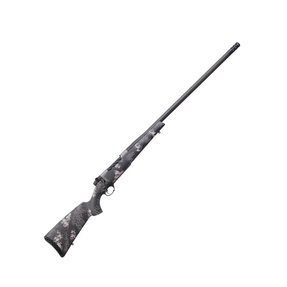 Weatherby Mark V Backcountry 2.0 TI Carbon Graphite Black Sponged Bolt Action Rifle – 257 Weatherby Magnum – Expanding on the ground-breaking Backcountry, the Backcountry 2.0 Ti Carbon combines our incredibly popular tensioned carbon fiber barrel with the supremely lightweight and strong titanum Weatherby Mark V action. This barrel system has a reputation for accuracy and in 2021, a Mark V Carbonmark equipped with this carbon fiber barrel set the new internal Weatherby accuracy record, returning a 0.06in 3-shot group at 100 yards with factory Weatherby Select Plus ammunition. Registering an impressive 5.3 lb starting weight, the Backcountry 2.0 Ti Carbon combines a titanium action with the new Peak 44 Blacktooth stock — the lightest production carbon fiber stock on the market. Aiding in both weight and recoil reduction is the second generation 3DHEX recoil pad, the first production 3D printed pad the firearms world has seen. Hidden inside the pad are a series of interlocking voids that progressively collapse during recoil, expanding the time component of the recoil impulse and deadening the sharp kick of magnum chamberings. More pronounced spiral fluting on the bolt body not only trims a little weight, it also reduces bearing surface within the action and results in even smoother function. The newly-threaded bolt handle is equipped with a lightweight aluminum extended, skeletonized knob. Fit with a titanium version of Weatherby’s highly-effective Accubrake ST, this brake is blended to match the profile of the #4 carbon fiber barrel. With 30 symmetrically-spaced ports that help harness the recoil, it tames even magnum chamberings and makes them pleasant to shoot. With exposed carbon fiber on both the barrel and the stock and raw titanium on the action, all other metalwork is sealed away behind a black ceramic Cerakote shell. The stock complements the two-tone action with a white and grey pattern to help break up the gun’s lines in the field. Combining supremely light weight and a superb barrel system, the Backcountry 2.0 Ti Carbon is the perfect melding of accuracy and low mass.
