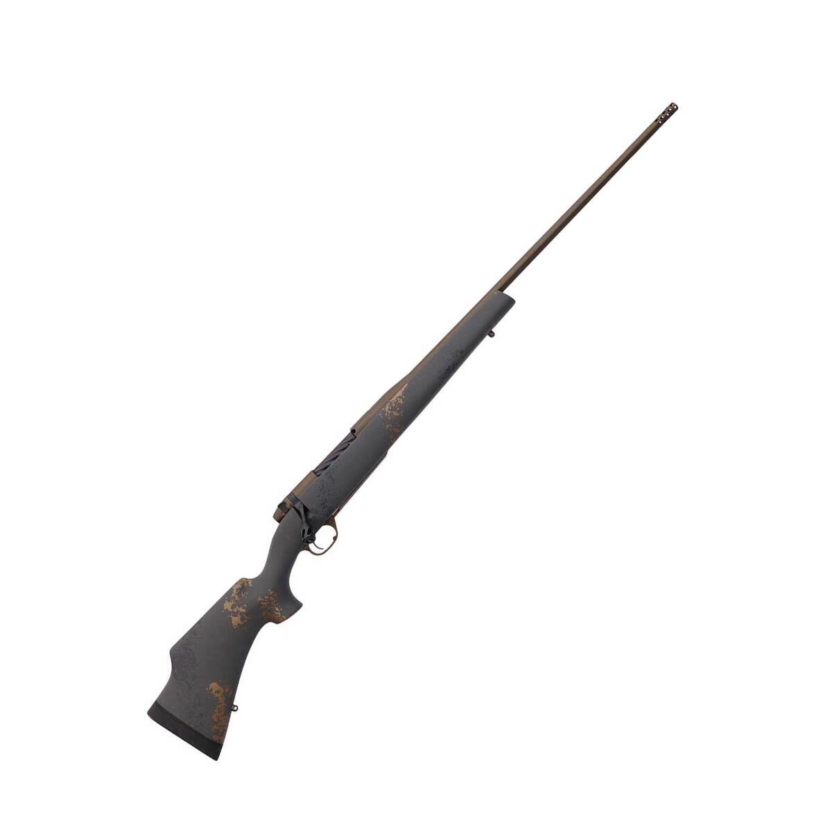Weatherby Mark V Camilla Ultra Lightweight Midnight Bronze Cerakote Black Smoke Gold Sponged Bolt Action Rifle – 6.5 Weatherby RPM – The Camilla Ultra Lightweight was designed by women, for women. The graceful lines are befitting of the way the stock fits female shooters. It features a shortened 13in length of pull, slender forearm, a slimmer grip with a gentle palm swell, and a higher comb for optimal scope-eye alignment. The recoil pad is fitted with an ergonomic cant to nest into the way a woman’s shoulder is built. This rifle features a composite stock with aluminum bedding blocks to provide long distance accuracy.