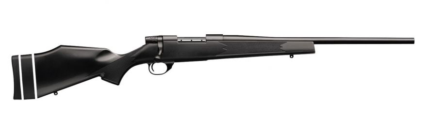 Weatherbys Vanguard rifles are guaranteed to shoot a 3-shot group of .99 or less at 100 yards (SUB-MOA) from a cold barrel when used with Weatherby factory or premium ammunition. Vanguard rifles are equipped with a match quality, two-stage trigger (adjustable down to 2.5 lbs.) and a 3-position safety, with the middle position allowing the shooter to work the action while safety is still engaged.The Vanguard action incorporates a one-piece machined bolt body, fluted for reduction in weight and bearing surface area, while eliminating binding for smooth action. Three gas ports allow high-pressure gases to escape laterally in the event of an accidental case rupture, and the massive M-16-style extractor ensures reliable and positive extraction. Vanguard rifles have a one-piece machined receiver featuring an integral recoil lug for the utmost in strength and structural integrity, along with a one-piece trigger guard with a hinged floorplate for easy access to unfired cartridges in the magazine. The Synthetic Compact model features composite Monte Carlo stock with a removable elongated spacer to adjust length of pull (12.5 to 13.625) and a 20 #1 contour barrel a bead blasted matte blued metal finish.